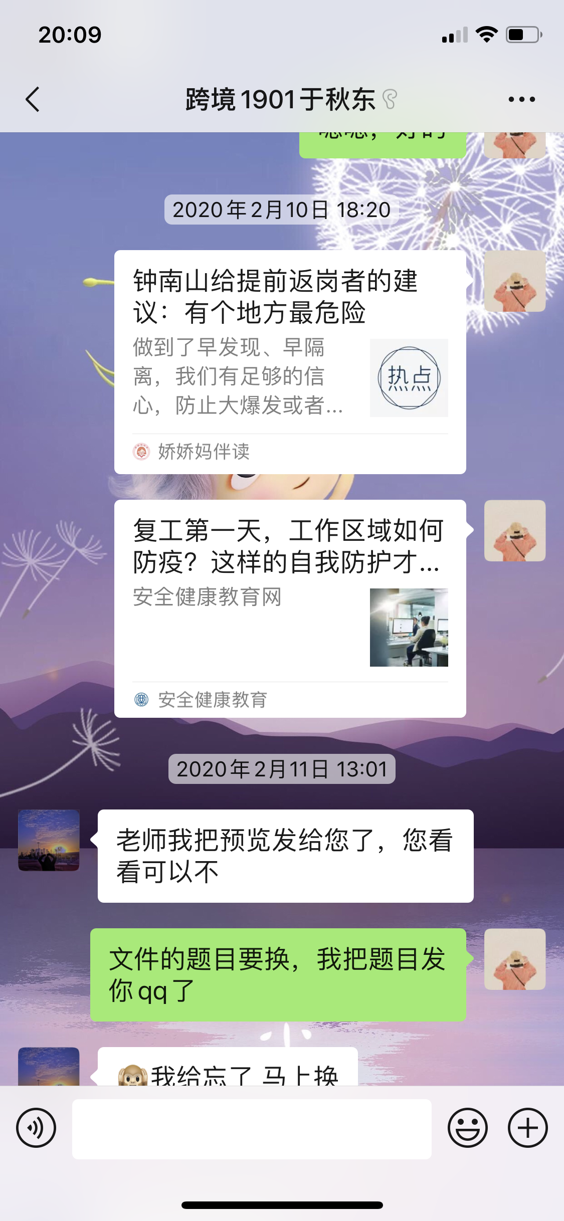 她是114名学生的贴心辅导员。从大年初一早上发布今年不串亲戚倡议书,到电话统计学生的地理位置和健康状况,特别是对信阳、南阳、驻马店籍学生进行重点排查和关注。114名学生的健康状况每天要统计数据上报,学生群里各样各类的问题要疏导和解答,她无日不网,无刻不网。宅在家里期间,同学们的小烦恼向她诉说,咳嗽发烧了该怎么办要问她,交通不同不能回家也要给她打电话,她总是尽自己最大努力给同学们疏导,确保每一个同学们身心健康,增强防护意识和社会信心。而她每天都忙的不亦说乎。