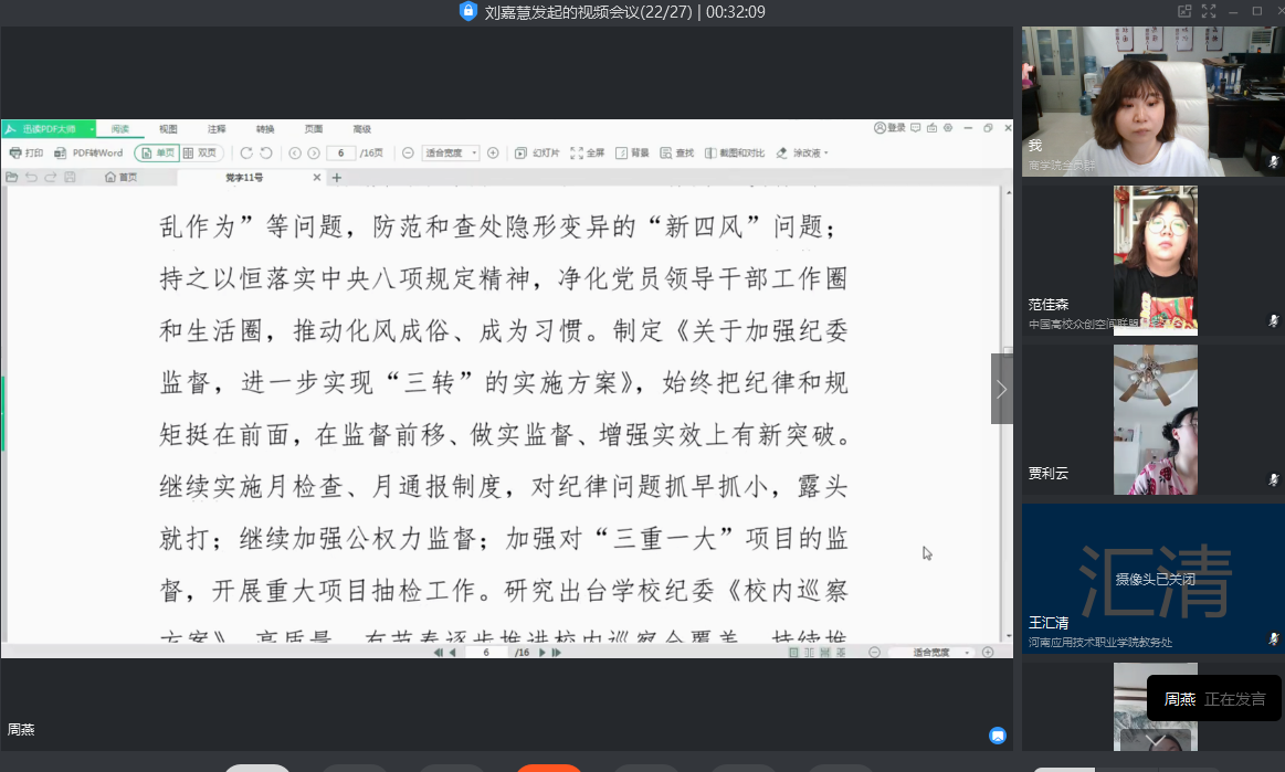 5月19日下午2点,国产又猛又黄又爽的视频党总支组织全体教职工学习《中共河南应用技术职业学院委员会 河南应用技术职业学院2020年工作要点》,学习会议通过钉钉平台召开,国产又猛又黄又爽的视频党总支副书记周燕同志主持。