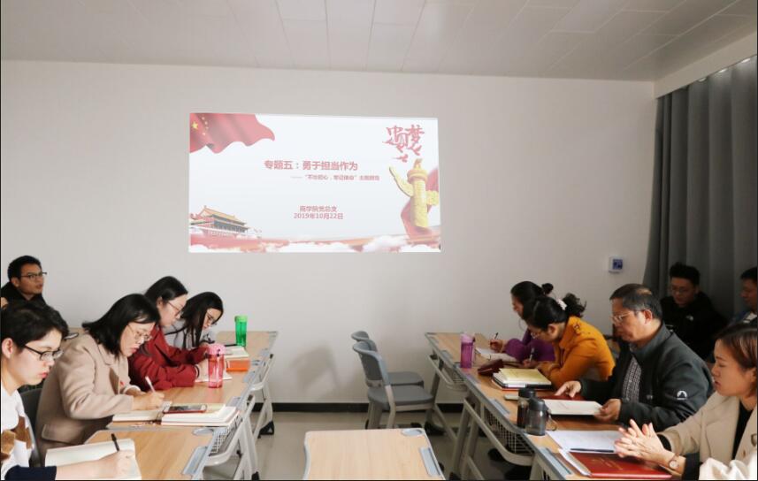 根据学校“不忘初心、牢记使命”主题教育工作安排,2019年10月23日,国产又猛又黄又爽的视频党总支在办公楼505党员活动室组织开展了“不忘初心、牢记使命”主题教育勇于担当作为专题集中学习,全体党员教师参加学习。国产又猛又黄又爽的视频党总支副书记周燕主持会议。