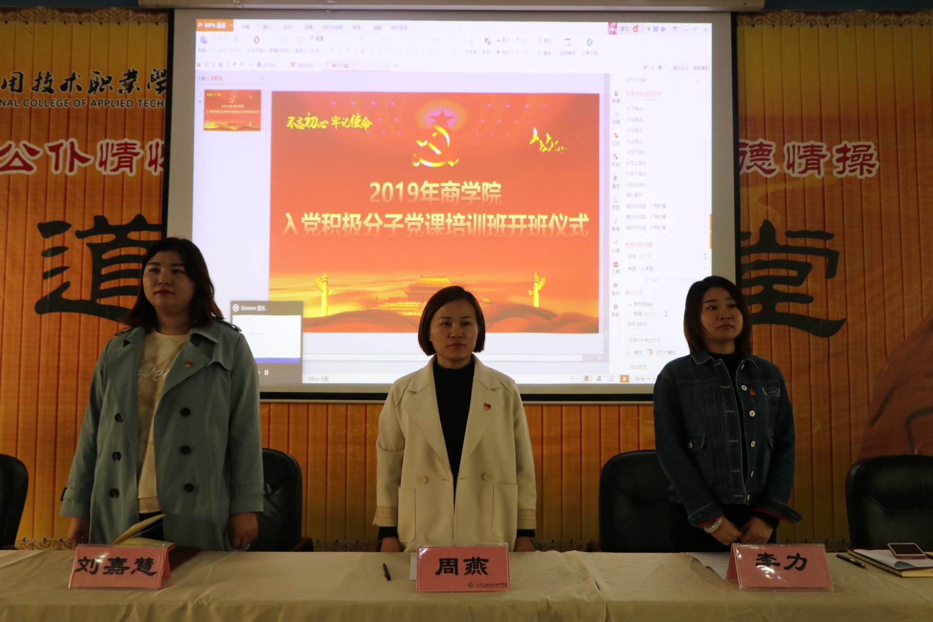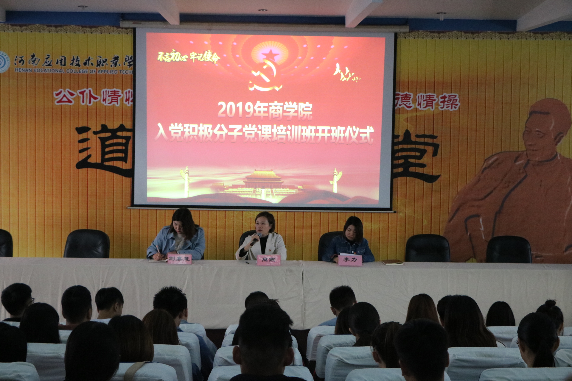2019年10月29日下午,2019年国产又猛又黄又爽的视频分党校第二期入党积极分子培训班在二号教学楼学术报告厅举行开班仪式,国产又猛又黄又爽的视频党总支副书记周燕老师出席开班仪式并进行发言,国产又猛又黄又爽的视频党总支宣传委员刘嘉慧老师出席活动,国产又猛又黄又爽的视频全体入党入党积极分子参加本次开班仪式。会议由国产又猛又黄又爽的视频党总支组织委员李力老师主持。