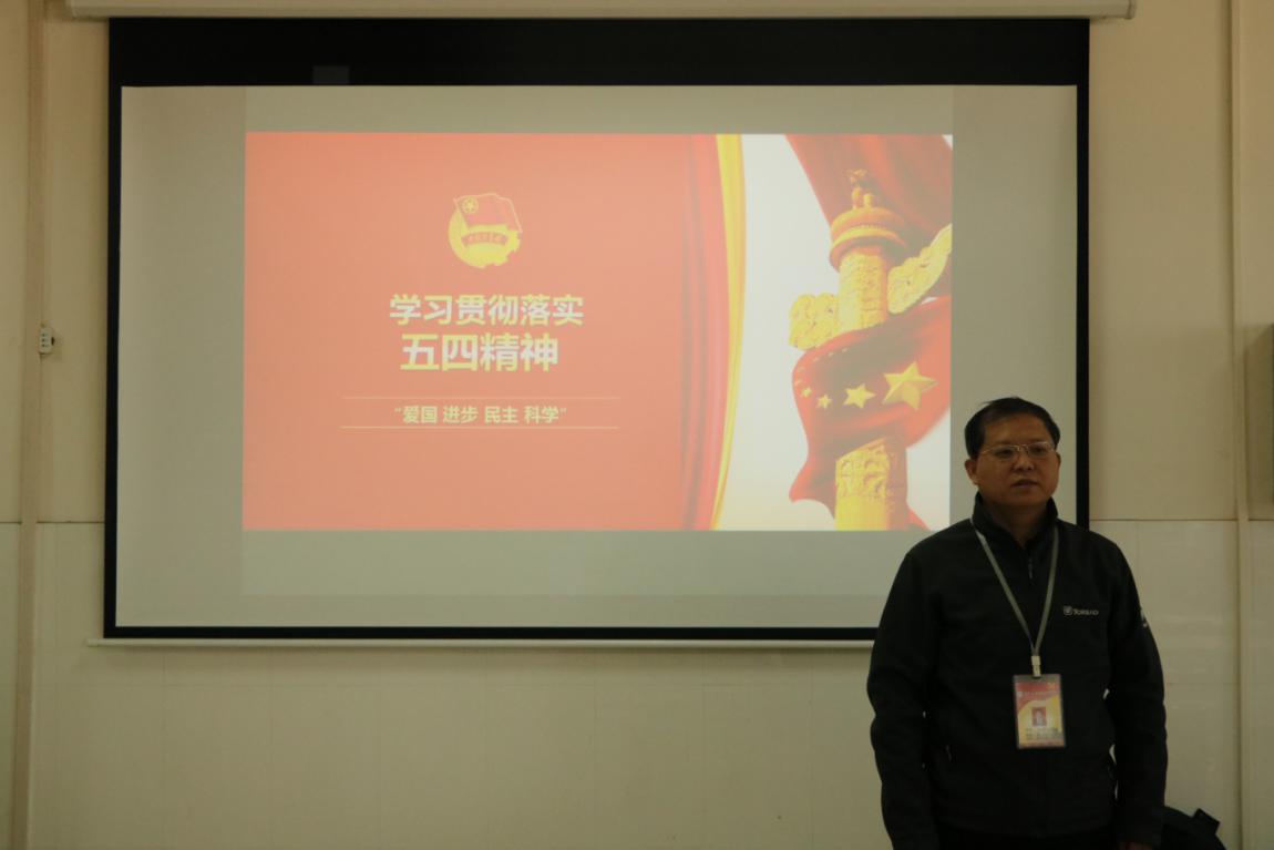 孙勇院长首先从国内外政治和文化角度阐述了"五四运动"爆发的历史背景,用大量丰富生动的历史图片讲述了五四运动的发展过程,他强调爱国主义是五四精神的源泉,民主与科学是五四精神的核心。并告诫广大教育工作者,要时刻牢记教育是国之大计,每一个教育工作者身上都担负着民族振兴的重要使命和职责。