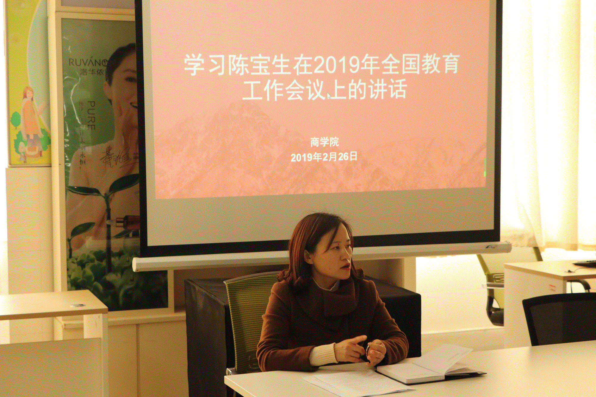 在学习前,周燕书记强调:陈宝生部长的讲话内容覆盖面广,针对性强,对于2019年的重点工作做了重点部署,为今年的教育工作指明工作方向,希望每一位老师都要认真学习,深刻总结,迎接挑战,为推进教育现代化、建设教育强国、办好人民满意的教育而奋斗,为实现中华民族伟大复兴的中国梦而努力做一名奔跑的追梦人。