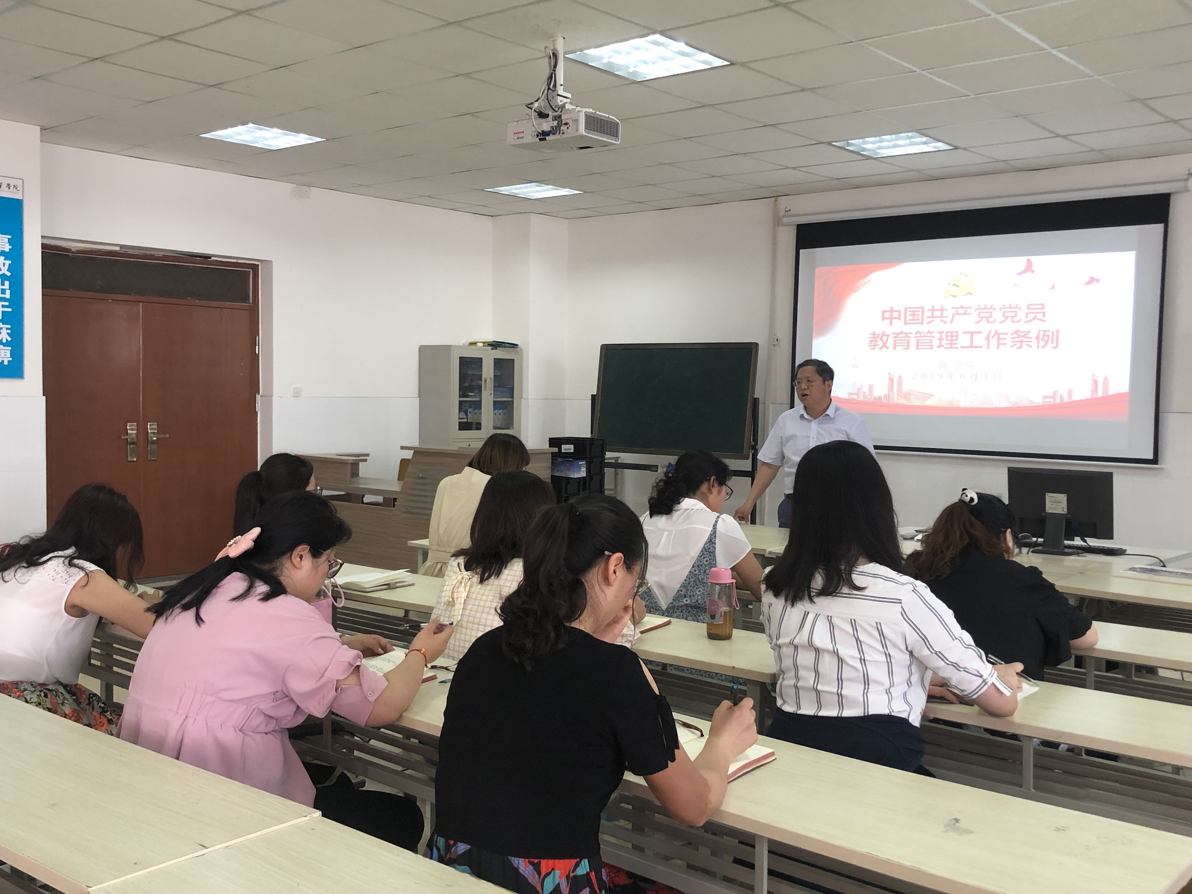 2019年6月4日下午,国产又猛又黄又爽的视频在实训室E609教室组织党员同志学习《中国共产党党员教育管理工作条例》。国产又猛又黄又爽的视频党总支书记、院长孙勇领学并主持学习会议。