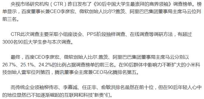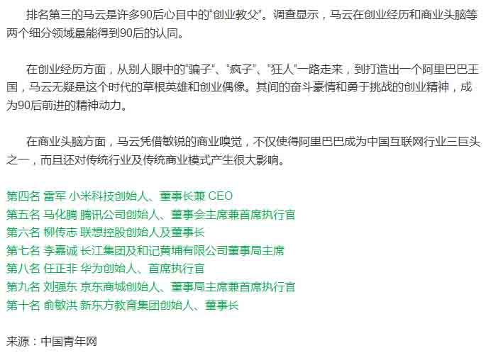 【调查】90后的偶像观:盘点青年人崇拜的商界大佬