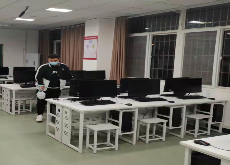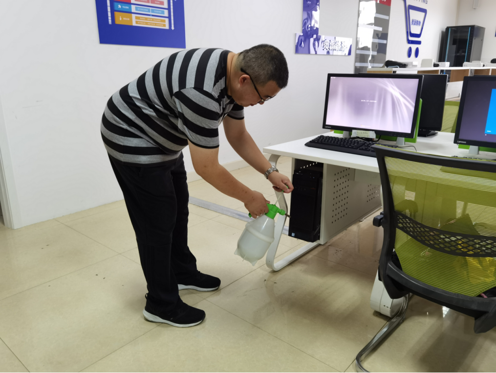 教师对实训室进行消杀
