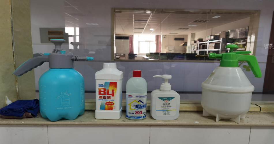 实训室摆放整齐的消杀物资