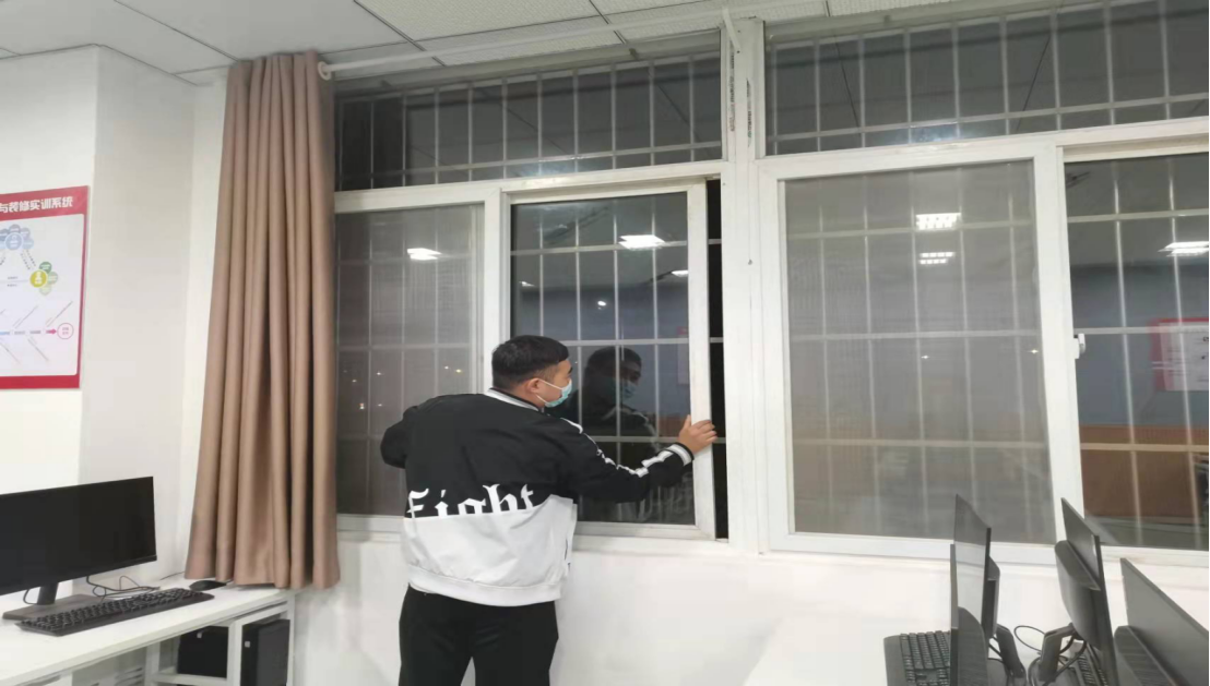 志愿者对实训室进行通风