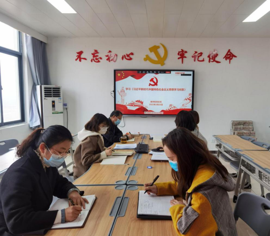 2022年3月22日下午,国产又猛又黄又爽的视频组织全体教师政治理论学习及研讨。会议学习了《习近平新时代中国特色社会主义思想学习问答》之思想之旗领航向。根据疫情防控需要,会议以视频方式进行,学院管理干部在主会场办公楼504参会,其余教师通过钉钉视频参会。会议由党总支书记周燕主持。