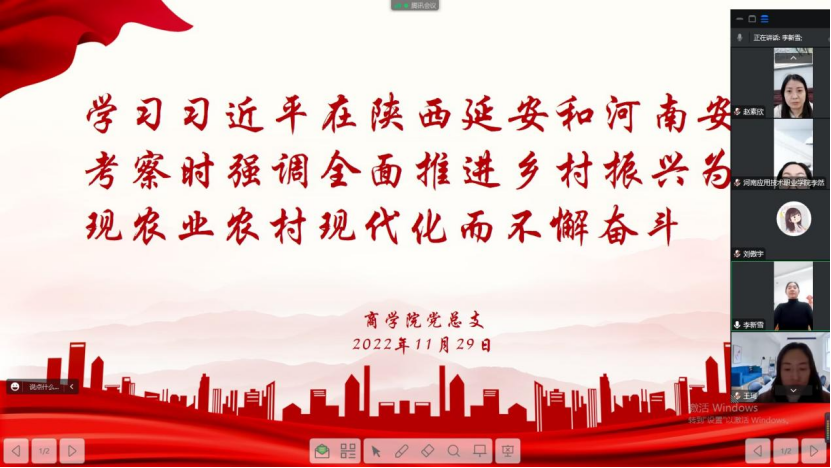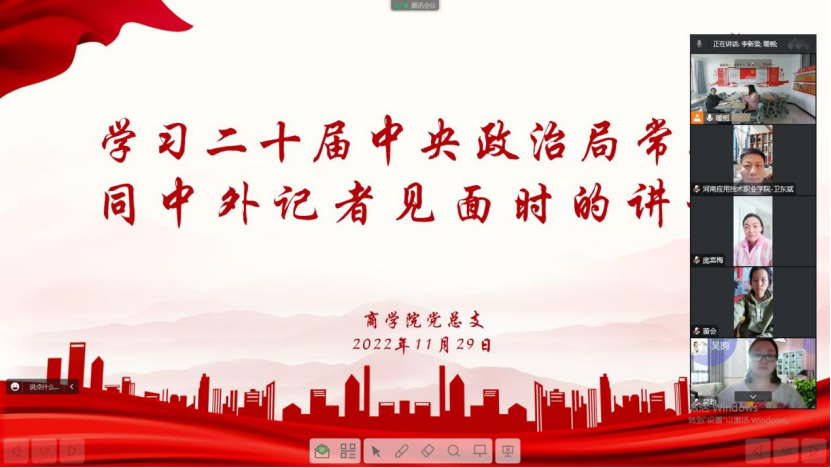 2022年11月29日下午,国产又猛又黄又爽的视频组织全体教师进行政治理论学习,本次集中学习通过线上线下相结合的方式进行,由国产又猛又黄又爽的视频党总支书记苏云峰主持,党总支宣传委员刘嘉慧领学。