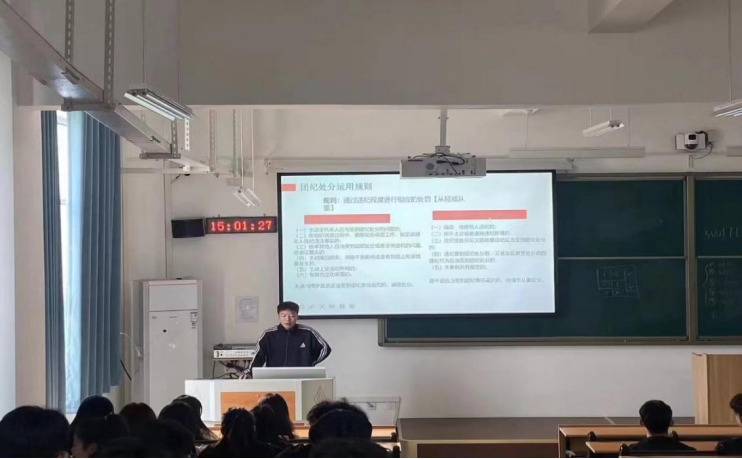 网营2201团支部书记王鹏磊在此次团课中强调有关团纪处分条例的运用规则,团纪处分通过其情形严重性分为不同的处分规则。分别分为从轻、从重、减轻、加重处分。