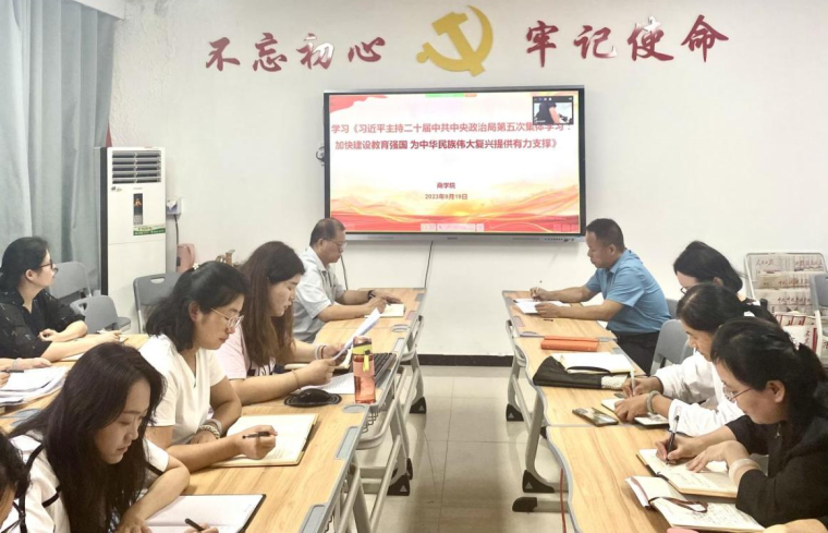 2023年9月19日下午,国产又猛又黄又爽的视频党总支组织全体教师进行政治理论学习,本次集中学习以视频会议形式在郑汴两校区同时进行,会议由国产又猛又黄又爽的视频党总支书记苏云峰主持、宣传委员刘嘉慧进行领学。