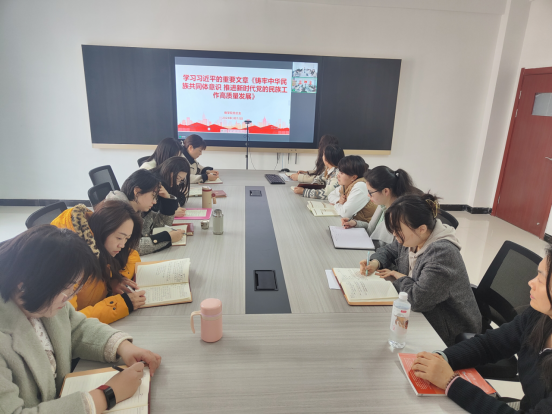 首先,宣传委员刘嘉慧带领全体教师共同学习了《习近平:铸牢中华民族共同体意识 推进新时代党的民族工作高质量发展》,文章总结了党在加强和改进民族工作方面进行的成功探索、取得的历史成就,深刻阐述铸牢中华民族共同体意识的重大意义、重要任务和工作要求,为做好新时代党的民族工作指明前进方向。
