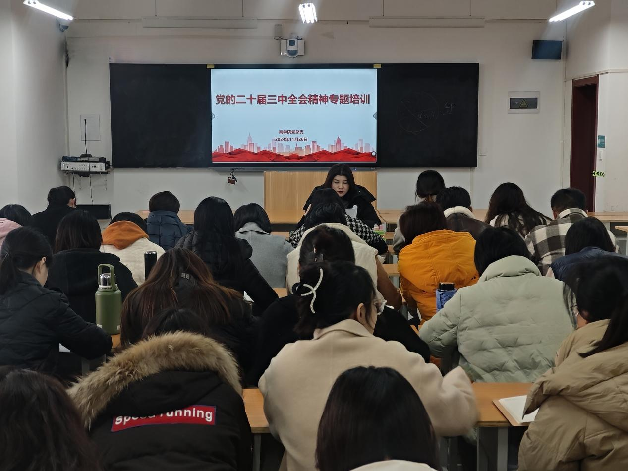 11月26日,国产又猛又黄又爽的视频党总支于开封校区北院教学楼E203组织召开党的二十届三中全会精神专题培训。会议由国产又猛又黄又爽的视频党总支宣传委员刘嘉慧主持,学院全体党员教师参加。
