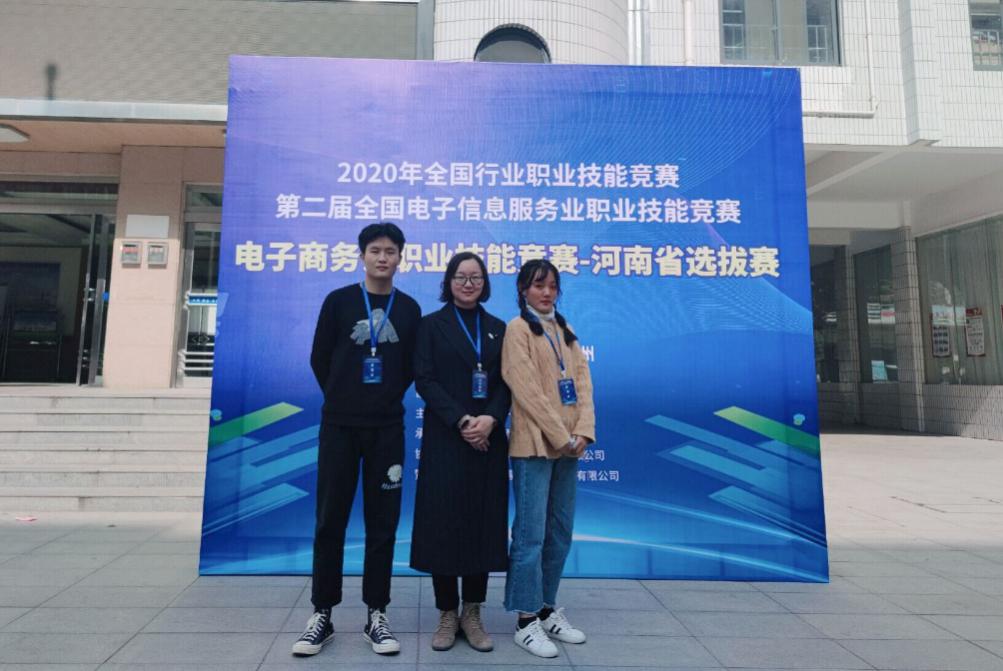 2020年11月6日,第二届电子商务师职业技能竞赛河南选拔赛在河南技师学院举行。本次比赛由中国电子商会和中国就业培训技术指导中心共同主办、河南技师学院承办、中教畅享(北京)科技有限公司协办。竞赛包括电子商务直播和电子商务推广两项竞赛内容,以团队竞赛模式开展,我院老师吴昀、乔晓娜指导的学生团队张文静、郭尚代表学校参赛,并荣获三等奖。