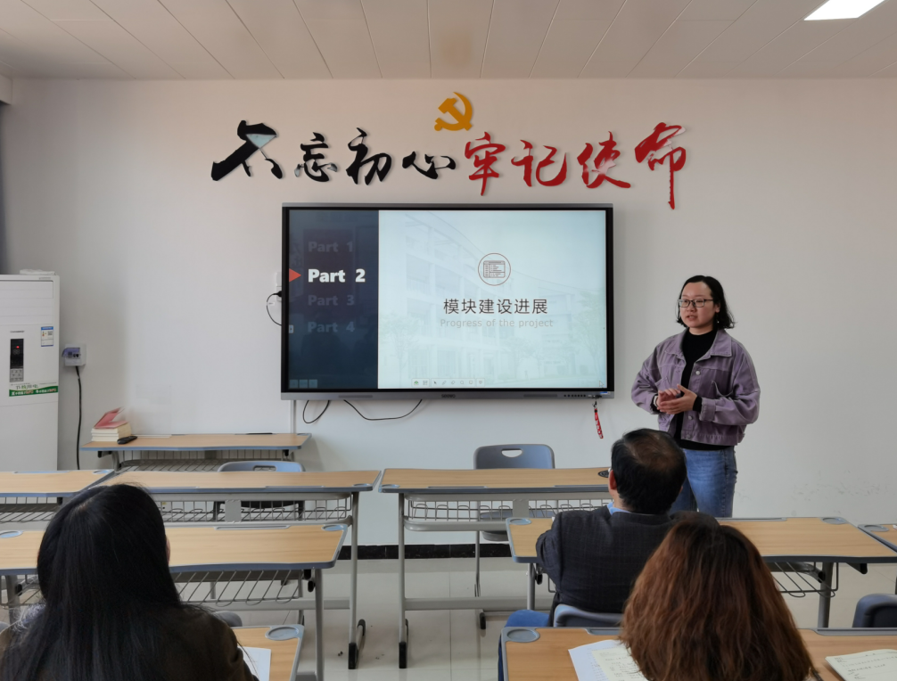 吴昀老师对“双高”建设中的教法改革模块的建设情况进行汇报。国产又猛又黄又爽的视频结合自身特色规划出双轨并行的教法建设模块,一边构建教法稳步提升的常规建设模块,一边提炼教法拔高亮眼的特色输出模块。在打牢基础的同时,注重教学成果的阶段性转化。目前仍然存在建设任务重,人员结构不平衡,创新能力不突出等问题,需要在发展中不断探索新方法解决各类问题,保证模块建设的进度。