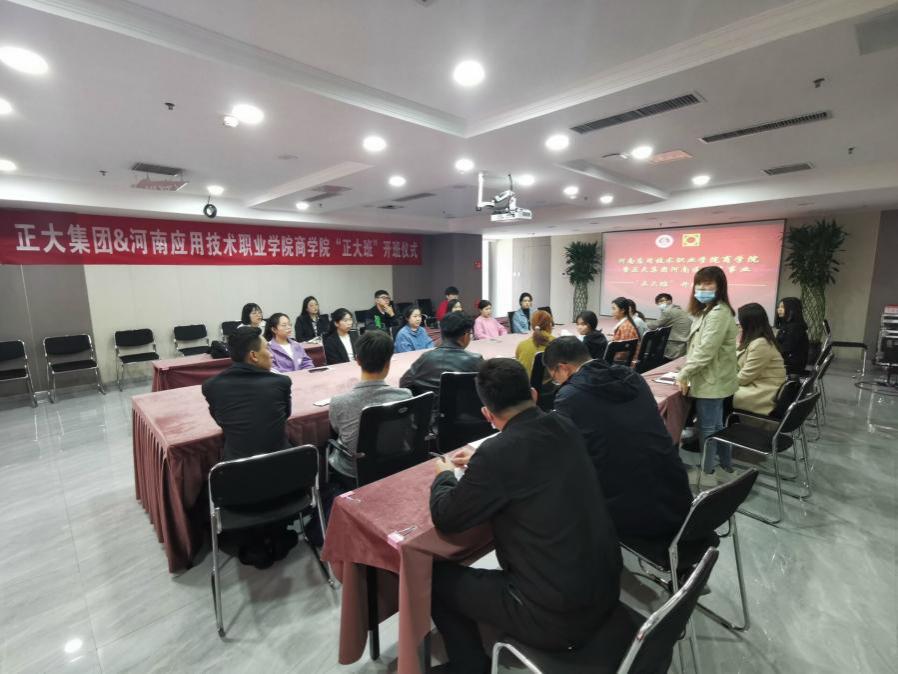 2021年4月8日上午,正大集团与河南应用技术职业学院国产又猛又黄又爽的视频校企合作“正大班”开班仪式在正大集团河南零事业总部顺利举行。正大集团河南区零售事业副总裁武磊、中东南区零售事业财务总监余康成、郑州零售运营总监范霞,国产又猛又黄又爽的视频院长孙勇、学工办公室主任刘超、团总支书记李力参加本次开班仪式。
