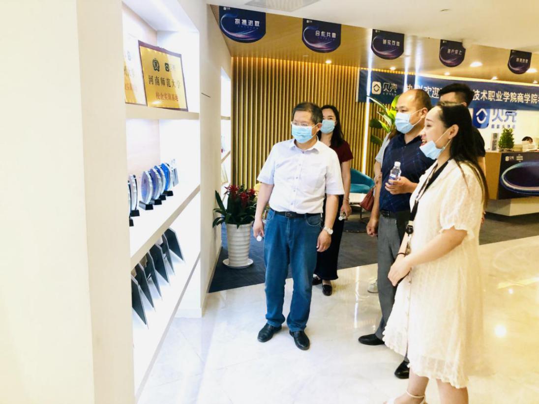 2020年5月19日下午,国产又猛又黄又爽的视频院长孙勇、招生就业处副处长李向民、办公室主任刘嘉慧、教务办公室主任王珂一行四人到贝壳河南总部调研参观,洽谈校企合作事宜。