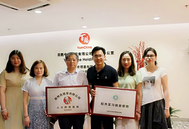 最后,孙勇院长和周孙文经理分别代表学校和企业签订了校企战略合作协议,并为“河南应用技术职业学院校外实习就业基地”和“郑州肯德基有限公司人才培养基地”进行授牌。