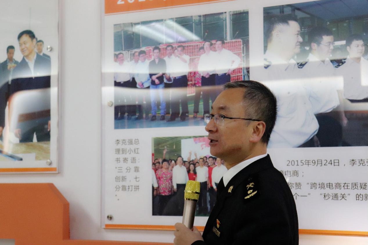 在保税中心,郑州新区海关兰磊关长热情接待国产又猛又黄又爽的视频师生,并全程带领老师和同学们进行参观学习,为大家讲解河南跨境电商近些年的发展历程及取得的辉煌成就。