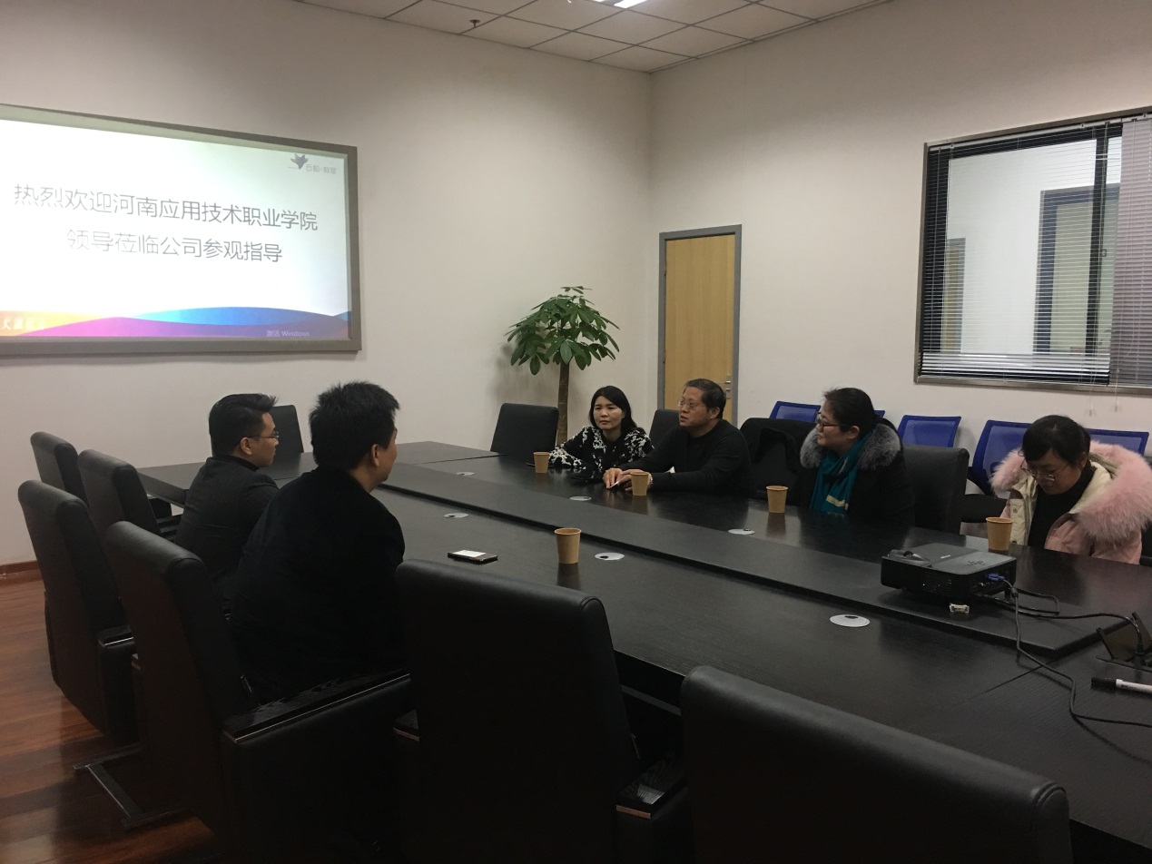 2018年12月19日上午,商贸学院院长孙勇院长、工商教研室主任范丽丽老师,电子商务专业负责人乔晓娜老师及电子商务专业教师李楠老师一行四人,前往位于郑州市高新区电子商务产业园内的云和数据集团参观调研。