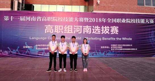 2018年4月9日,“2018年全国职业院校技能大赛”高职组河南选拔赛在商丘职业技术学院举行,大赛共设置商贸素养和情景营销两个方面,商贸素养以单项选择题的形式考察参赛选手的商贸基础知识和基本素养,情景营销以小组对抗的形式,考察参赛选手的营销知识的实践演练能力和随机应变能力,比赛历时7个小时,是对参赛选手智力和体力的双重考验,我校四名参赛选手沉着应对、齐心协力,最终获得团体二等奖的成绩。
