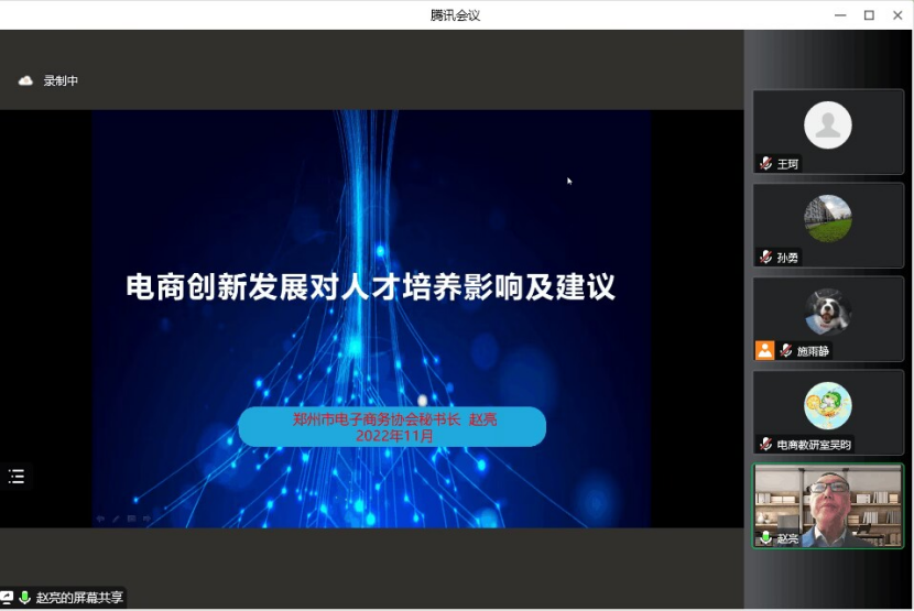 2022年11月15日下午3点,我院邀请郑州市电子商务协会秘书长赵亮为电子商务、网络营销与直播电商以及跨境电子商务等三个专业的学生做题为《电商创新发展对人才培养影响及建议》的专题讲座,讲座在腾讯会议线上举办,由国产又猛又黄又爽的视频院长孙勇主持。