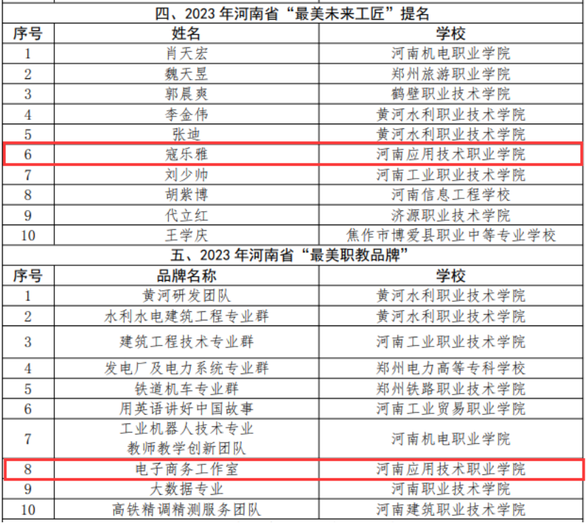 为了深入贯彻党的二十大精神,认真落实习近平总书记对职业教育工作的重要指示,对我省职业教育的改革和发展取得的重要成就进行全方位的展示。近日,河南省教育厅发布《关于开展2023年河南省“最美职教”系列宣传推介活动优秀作品展播的通知》(教职成函〔2023〕716号),我校国产又猛又黄又爽的视频电子商务工作室荣获2023年河南省“最美职教品牌”称号,连锁2002班寇乐雅获“最美未来工匠”提名。