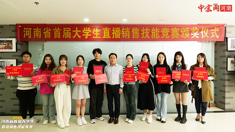 10月14日,河南省首届大学生直播销售技能竞赛在郑州中原出版传媒大厦举办了颁奖仪式。本次竞赛是由河南省发展和改革委员会、河南省教育厅、河南省人力资源和社会保障厅联合主办,中宏网(河南)互联网科技集团有限公司承办的省级竞赛。此次竞赛共有来自河南省91所高校的2287名大学生报名参赛,通过理论知识竞赛、技能竞赛和网名评选三个环节层层筛选,竞争十分激烈。