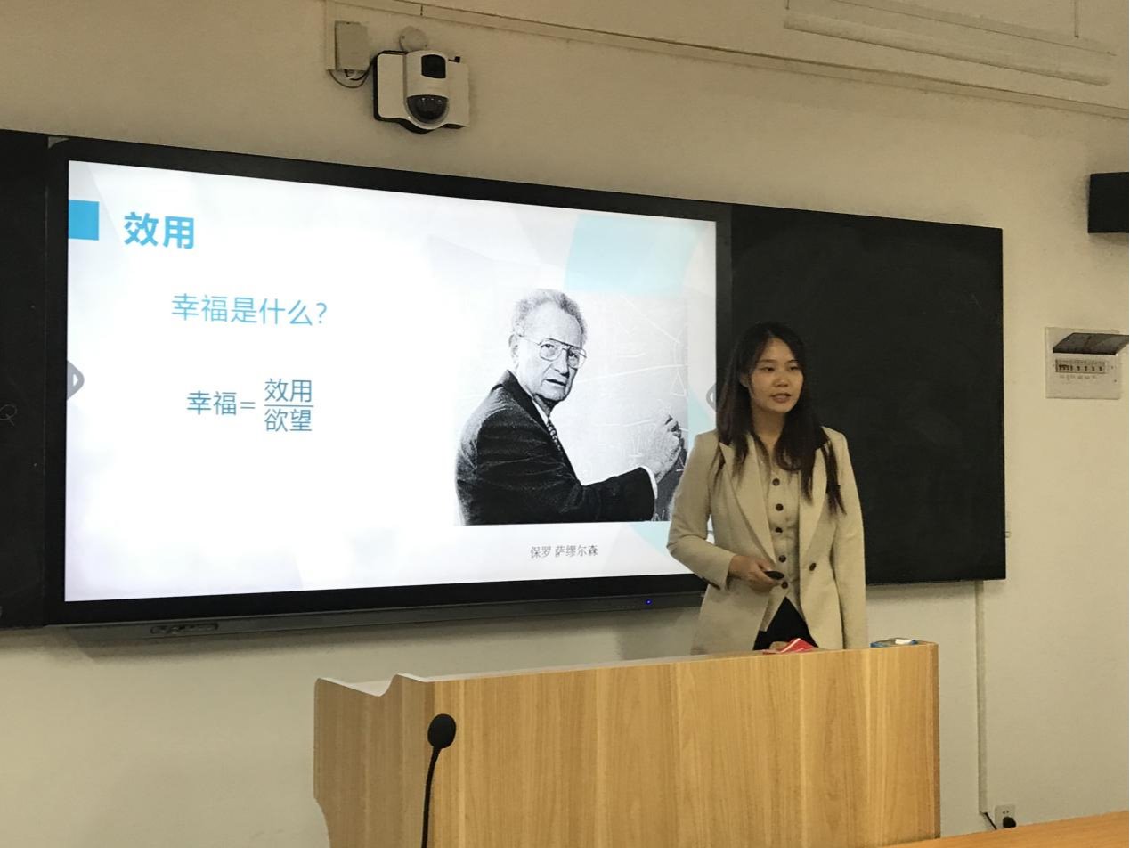 马晓月选择了《经济学》课程中《效用与边际效用递减规律》一节的内容进行教学展示,教学内容紧跟学科前沿,以网红产品的出现为引,结合案例逐步展开教学内容,深入浅出地讲解了相关知识点。
