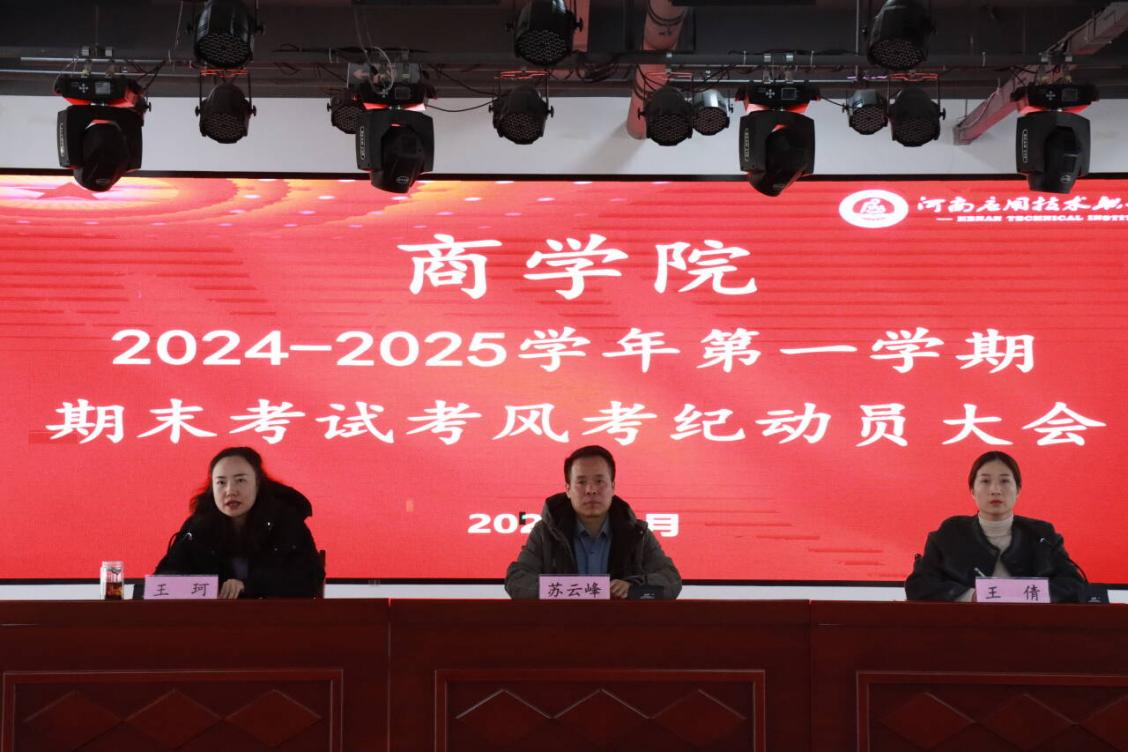 为严肃考风考纪,营造诚信考试氛围,国产又猛又黄又爽的视频于2025年1月3日在学生活动中心召开2024-2025学年第一学期期末考试考风考纪动员大会。国产又猛又黄又爽的视频党总支书记苏云峰、副院长王珂出席会议,全体辅导员及学生参加会议,会议由党总支副书记王倩主持。