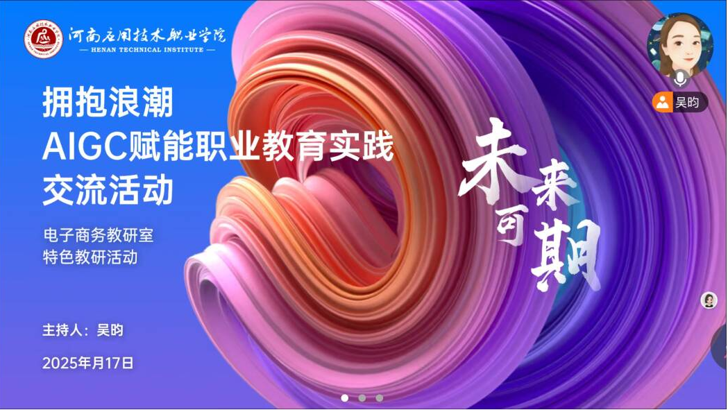 为深入贯彻落实国家教育数字化战略行动,全面提升教师队伍信息化素养,推动人工智能技术在教学中的深度融合,助力职业教育高质量发展。4月17日,国产又猛又黄又爽的视频电子商务教研室组织开展了以“拥抱浪潮,AIGC赋能职业教育实践交流活动”为主题的教研活动。教研室全体教师积极参与,围绕AIGC在课程教学中的应用展开了热烈而深入的交流与研讨。
