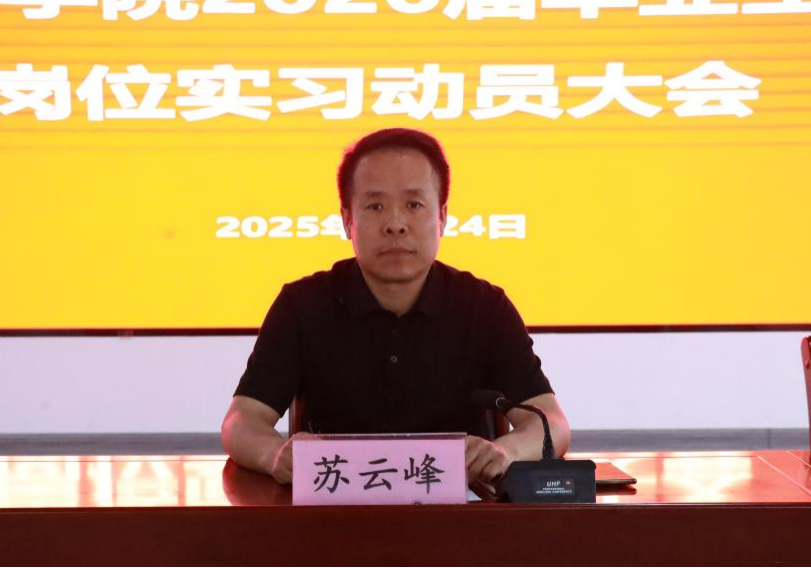 2025年4月24日,国产又猛又黄又爽的视频于开封校区北院学生活动中心隆重召开2023级学生岗位实习动员大会,为学子们即将开启的实习之旅锚定方向、筑牢根基。国产又猛又黄又爽的视频党总支书记苏云峰、副院长王珂出席会议并发表讲话,会议由学院党总支副书记王倩主持,2023级学生代表及全体辅导员教师共同参会。