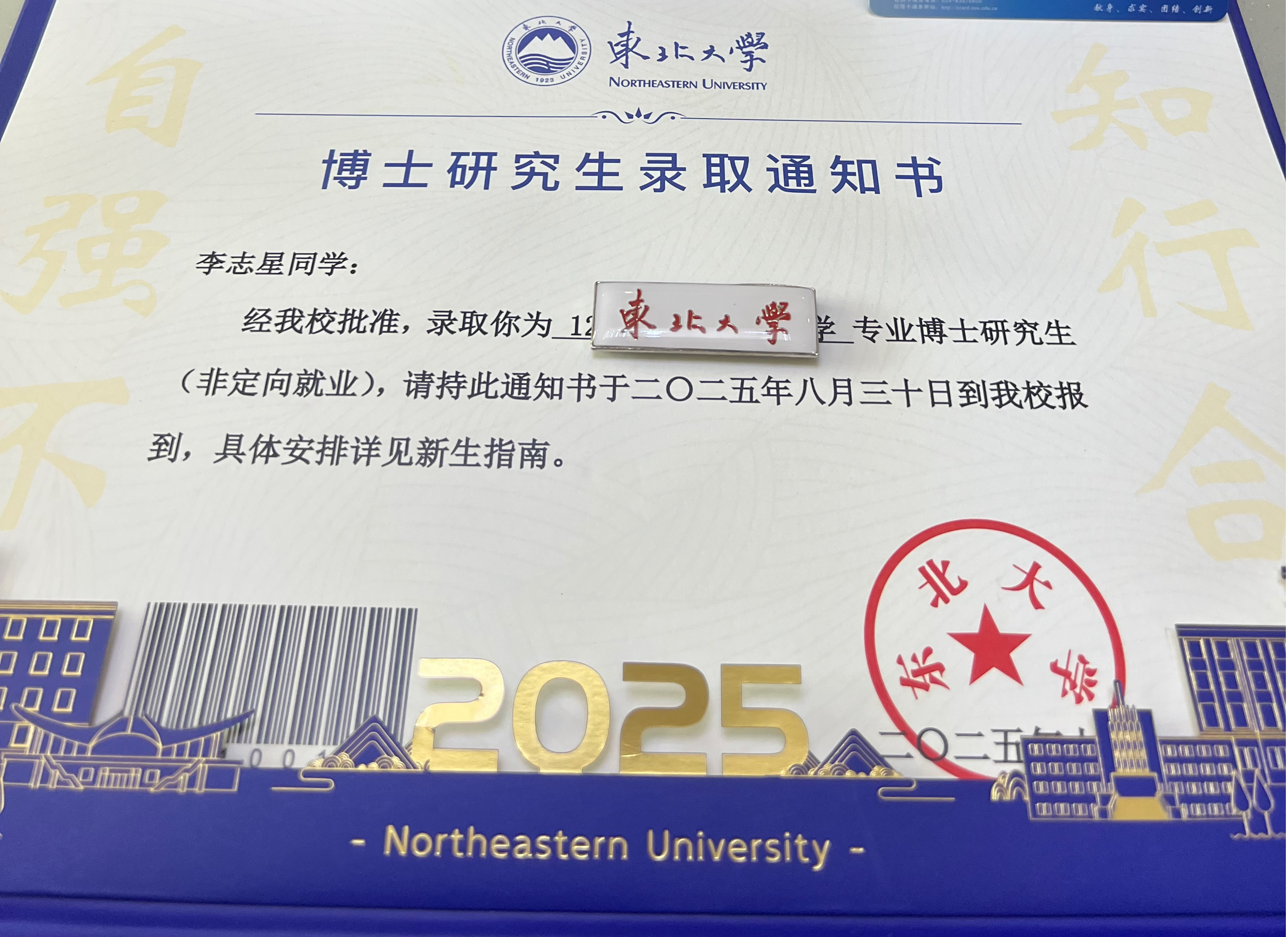 喜报:国产又猛又黄又爽的视频学子李志星被东北大学录取为博士研究生