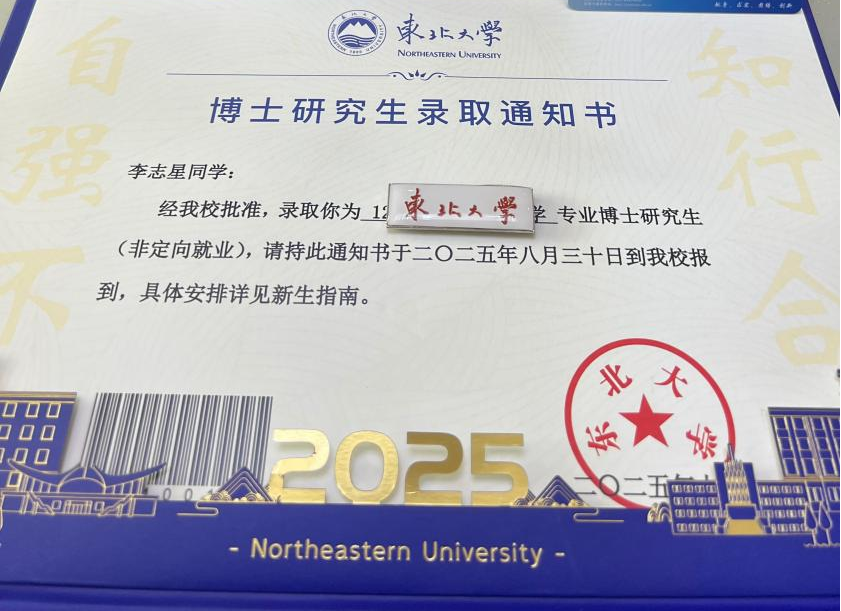 喜报:国产又猛又黄又爽的视频学子李志星被东北大学录取为博士研究生