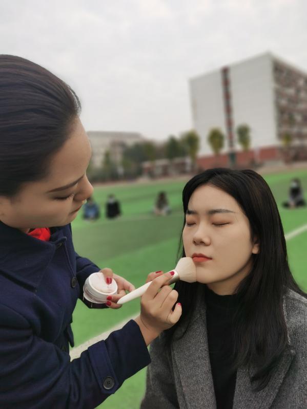 空乘工作人员的仪容仪表代表着航空企业,国家,民族的形象,因此在招聘空乘时,要求应聘者除了拥有优雅的气质,大方得体的仪态外,还必须要掌握熟练的化妆技巧。在现场,同学们通过对底妆、定妆、眉毛、眼影、眼线、睫毛膏、修容、腮红、口红九大步骤的进行形象打造展示,体现空中乘务职业的统一性、纪律性,展现了航空公司的整体形象,体现出对职业的尊重,对乘客的尊重。