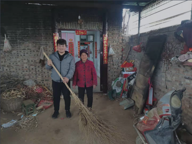 4、市场营销1902班的刘啸天同学对于空巢老人的问题也很关注,假期回到家乡渑池县,他又再次发出了感慨:许多因子女不在身边的空巢老人,在最需要子女陪伴的时候,却不得不孤身一人。这些老人儿女常年在外打工,他们大多都是老夫老妻相依为伴,虽然村里的路修的很好,每家每户政府都给安了水龙头,吃水问题不愁了,政府给装了新型厕所,环境问题好了很多,政府也安排有环卫工人每天都来村子里面打扫卫生,在我参加公益活动,帮扶老人及参加环保清洁服务过程中,我常常思考,如何在乡村振兴的道路上发挥自己的专业优势和力量。