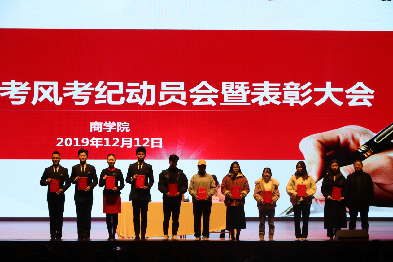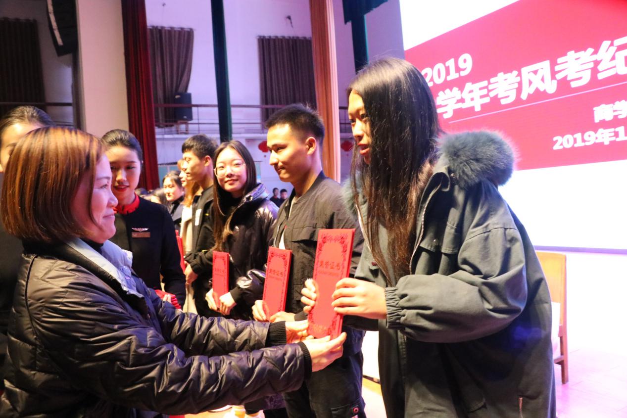 ?周燕副书记宣读了表彰文件,对营销技能大赛、电商技能大赛、物流储备方案设计大赛、连锁门店营运沙盘、空中乘务专业职业素质技能大赛以及学风宿风建设中表现突出的班级和个人进行了表彰。孙勇院长和周燕副书记分别为受到表彰的先进班级和个人授予荣誉证书。