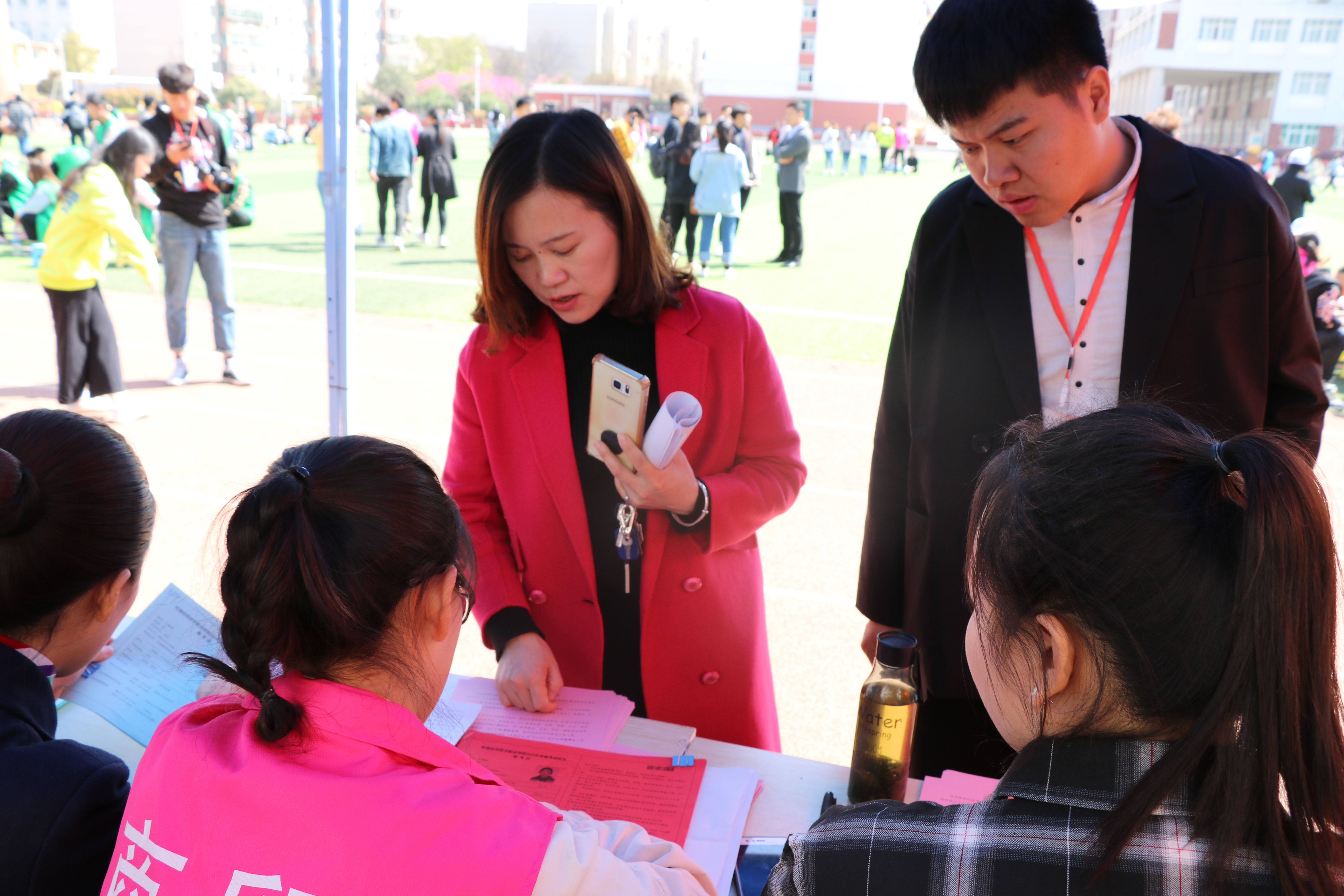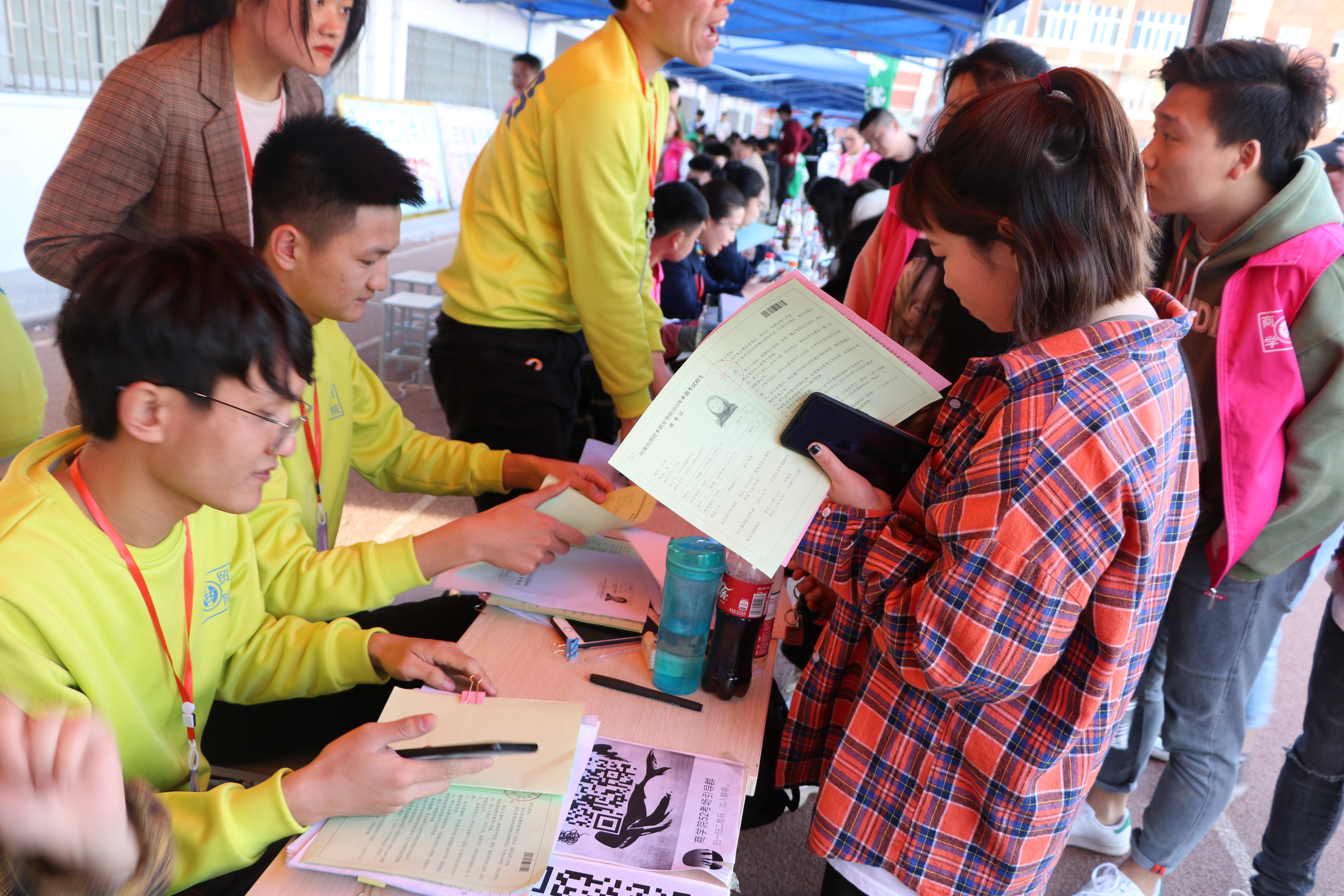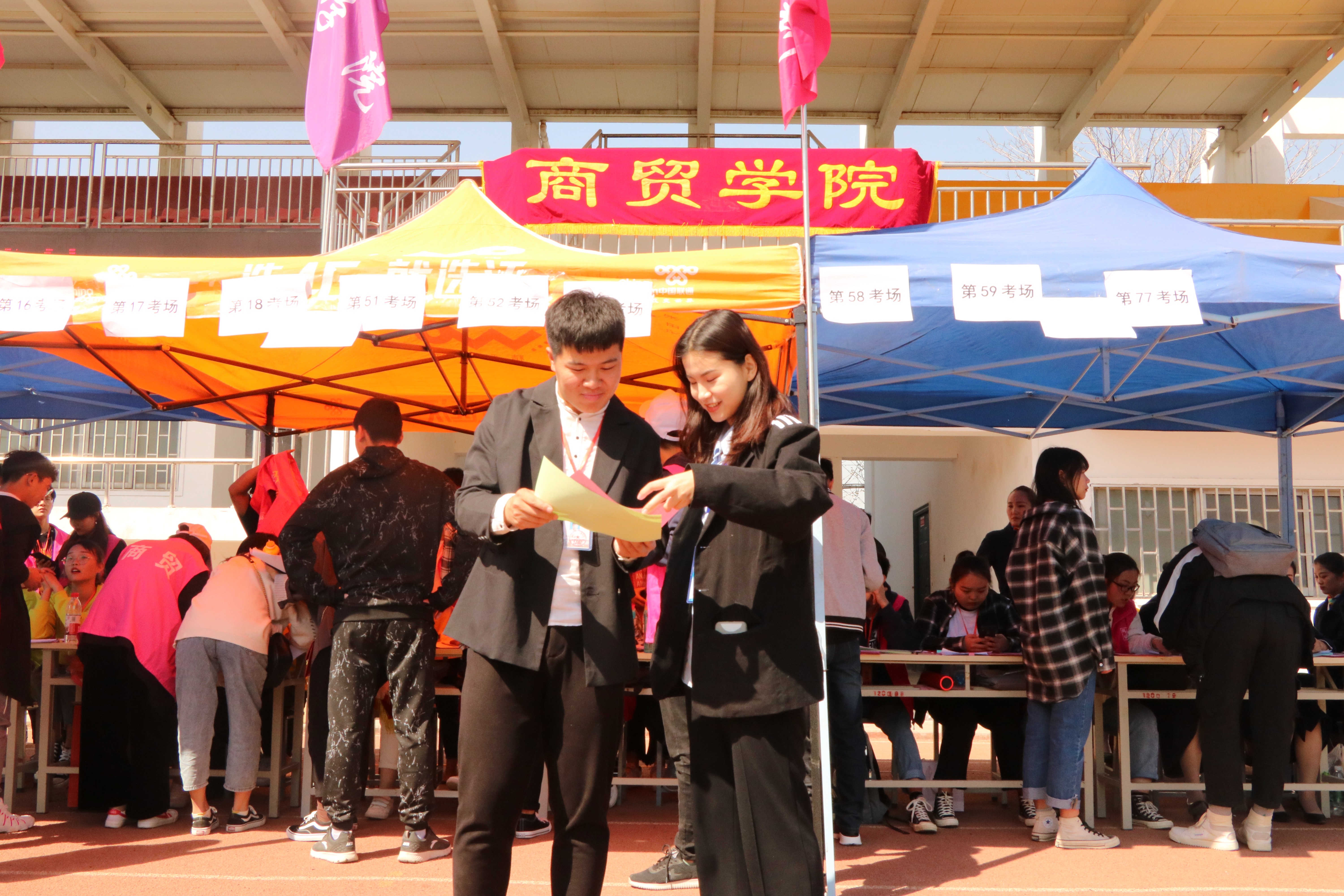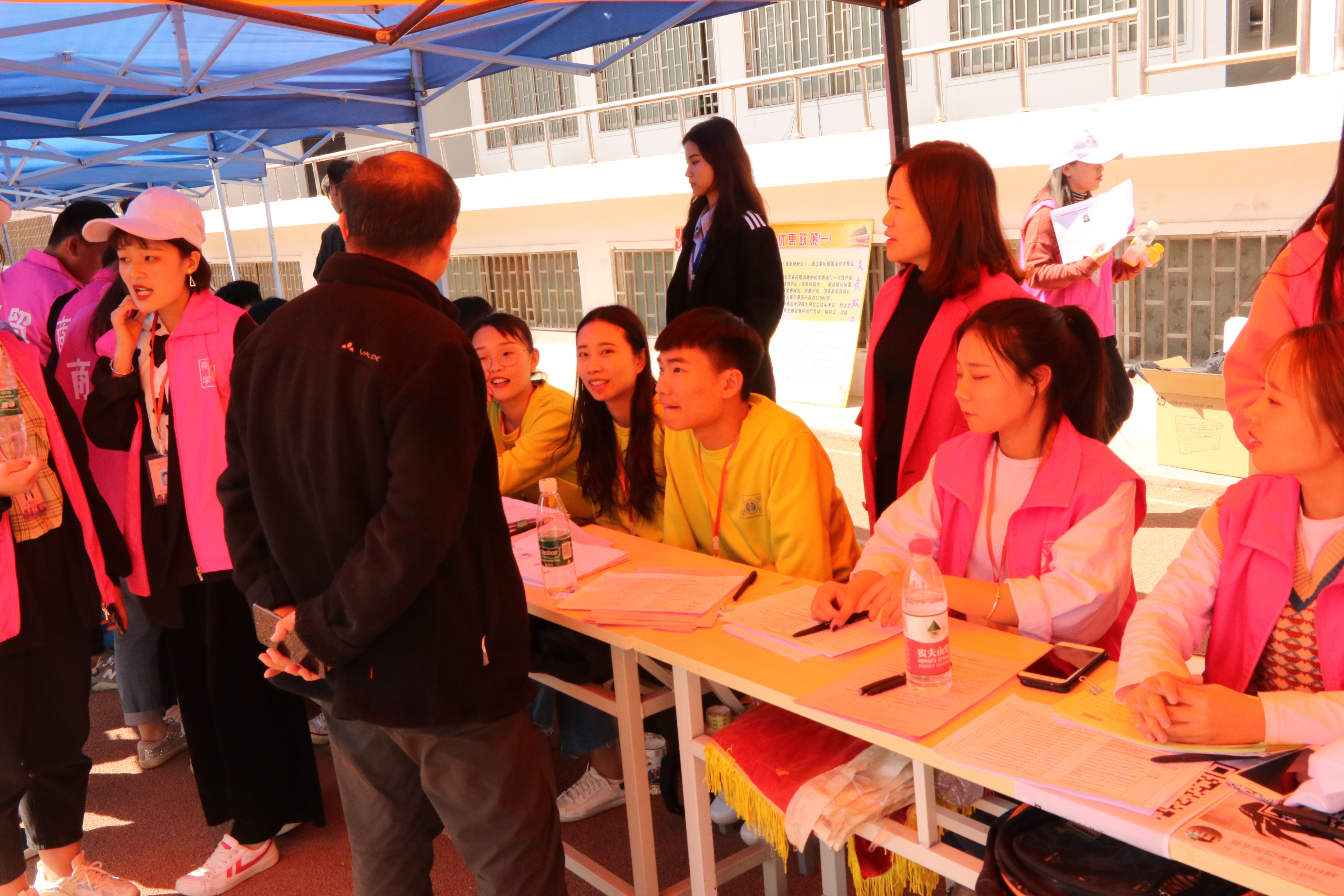 31日,单招考试开始,不管是早上指引考生按考场集合,还是中间转场考试,以及为候场考生分发午餐,每一位引导人员都快速、有序的完成了工作。考试完毕,考生如释重负,但是小粉们并没有离场,所有成员把卫生打扫干净,桌椅归位,做到了好的开始,好的结束。