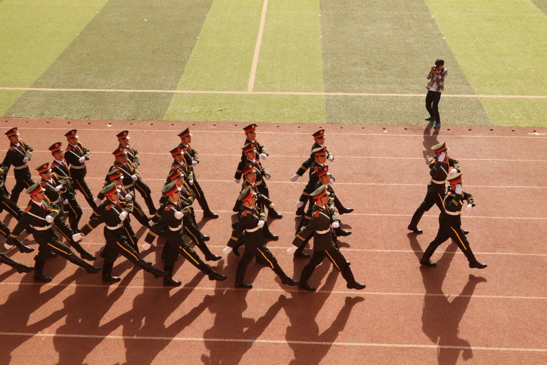 首先,向主席台走来的是国旗班方队,他们腰杆笔挺,头正颈直带着坚定的目光,使得每步都铿锵有力。