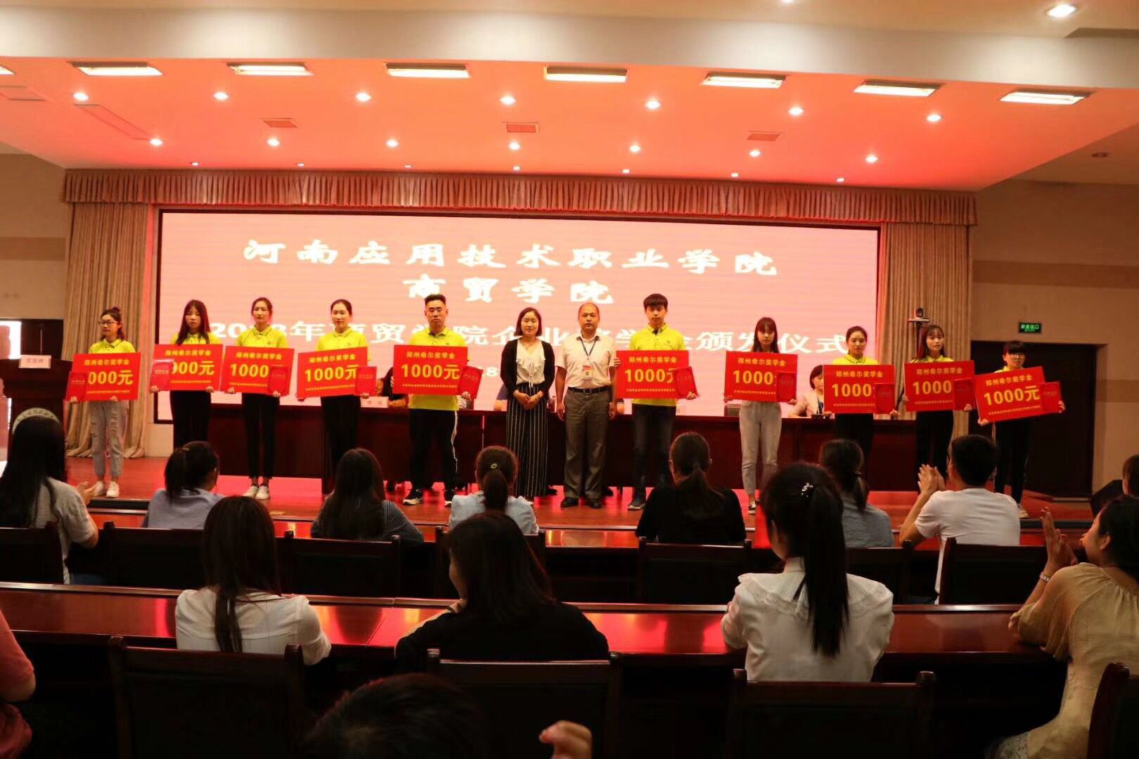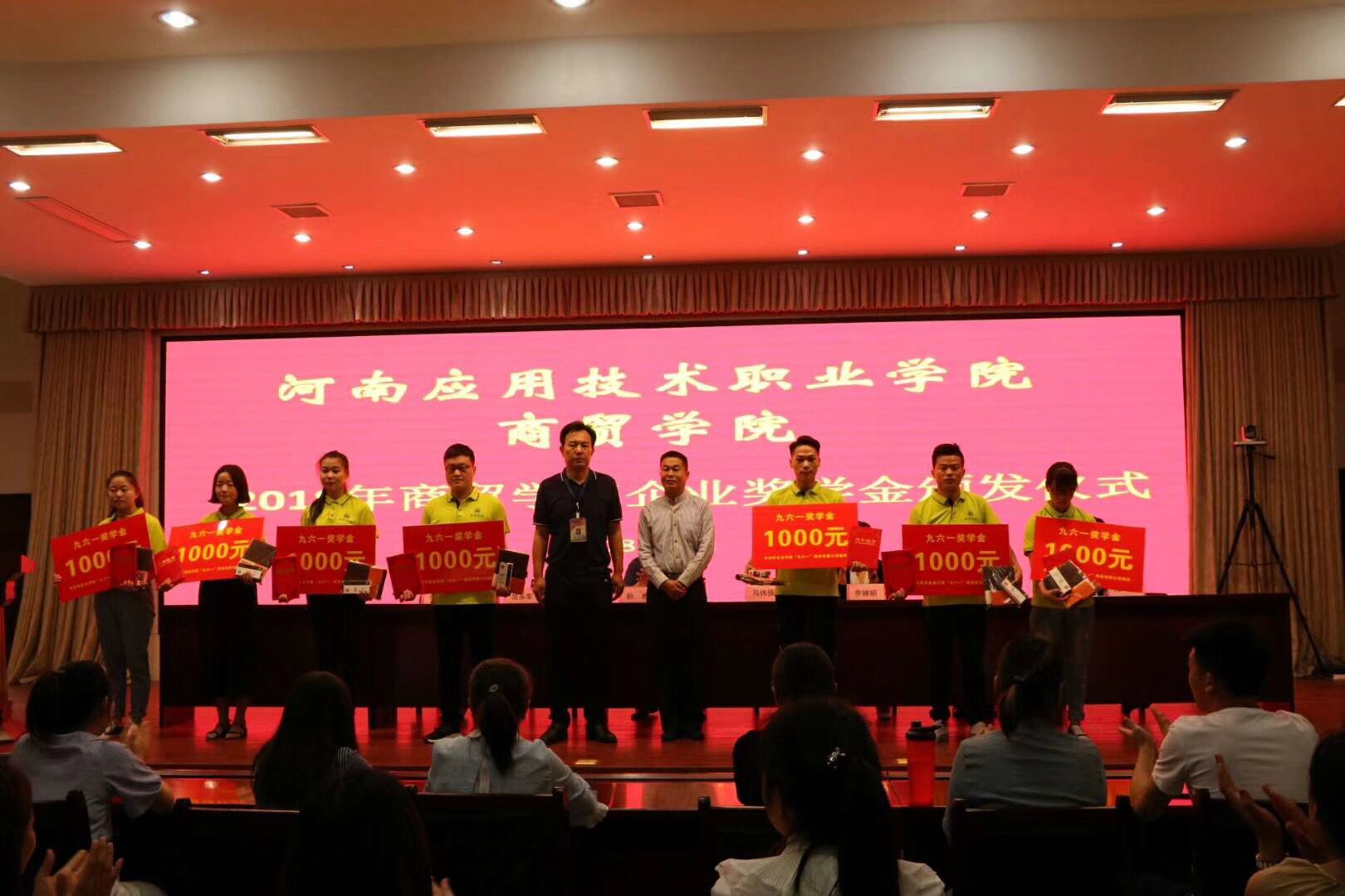 “希尔奖学金”和“九六一奖学金”是我校与郑州希尔信息技术有限公司和河南“九六一”商务有限公司签订的校企合作项目,这也是两企业第二年分别提供一万元以奖学金形式赞助商贸类品学兼优在校大学生。奖学金的评定遵循公平,公开,公正原则,通过学生个人申报、集中评审、结果公示等评选程序,主要表彰那些学习成绩优异,文体活动积极,家庭贫困的优秀的大学生。通过设立企业奖学金,更能鼓励和激发那些思想上进、家庭不富足但品学兼优的同学更加的热爱生活、积极参加社会实践,取得更优异的成家,让他们感受到来自社会的爱。同时,企业也是为了感谢学校为其公司培养的高素质市场营销、电子商务专业人才。