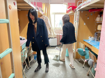 辅导员老师重点检查了宿舍卫生和用电安全,了解学生开学准备情况,同时叮嘱学生按照疫情防控要求开窗通风,保持宿舍干净整洁。