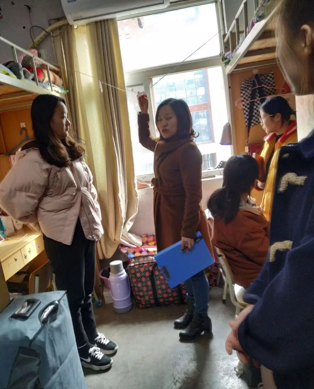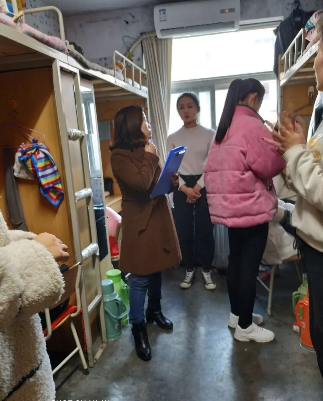 新学期的第一次宿舍大检查,目的是帮助同学们养成良好的卫生习惯,共创一个文明、和谐的温馨宿舍。