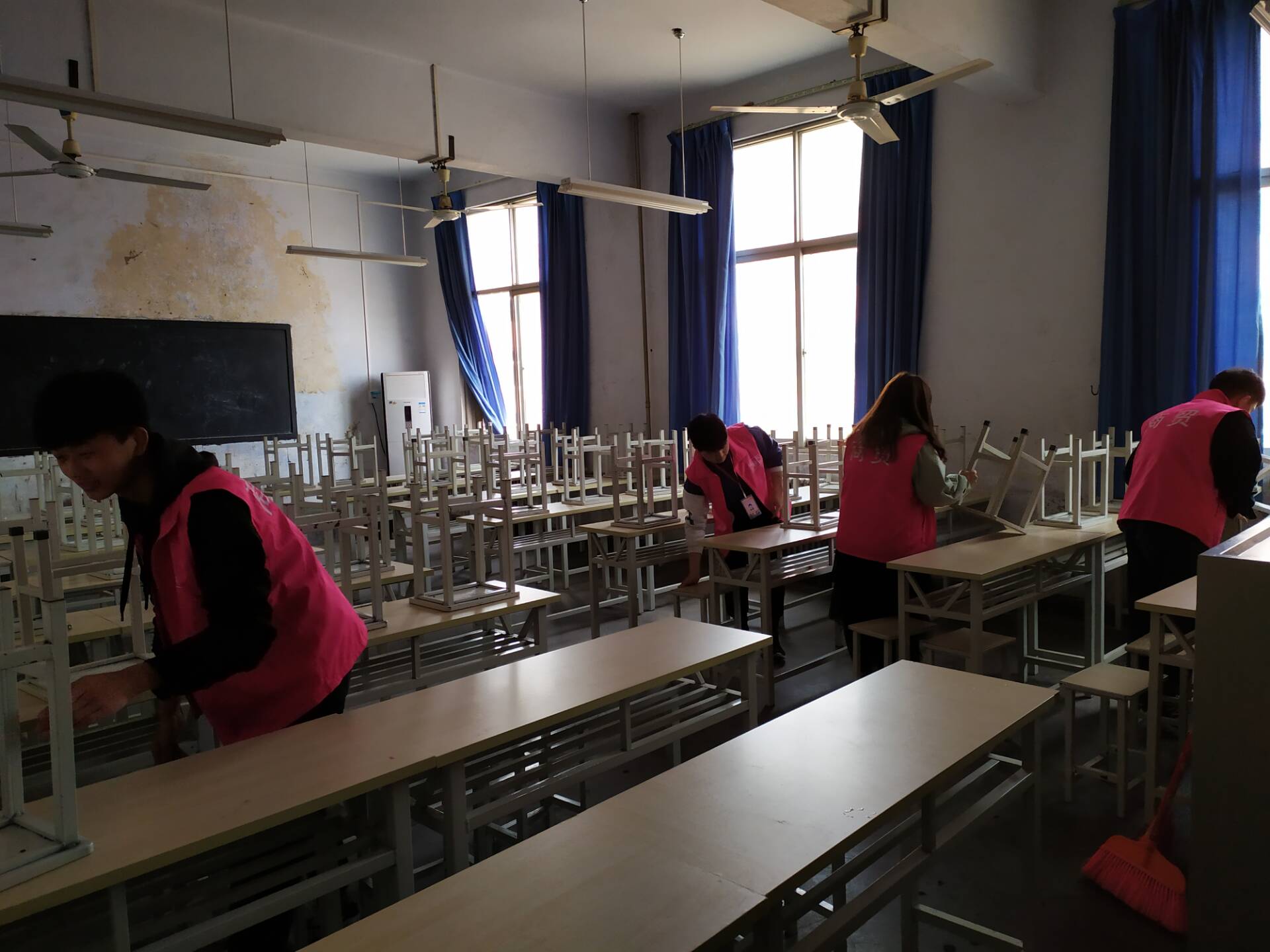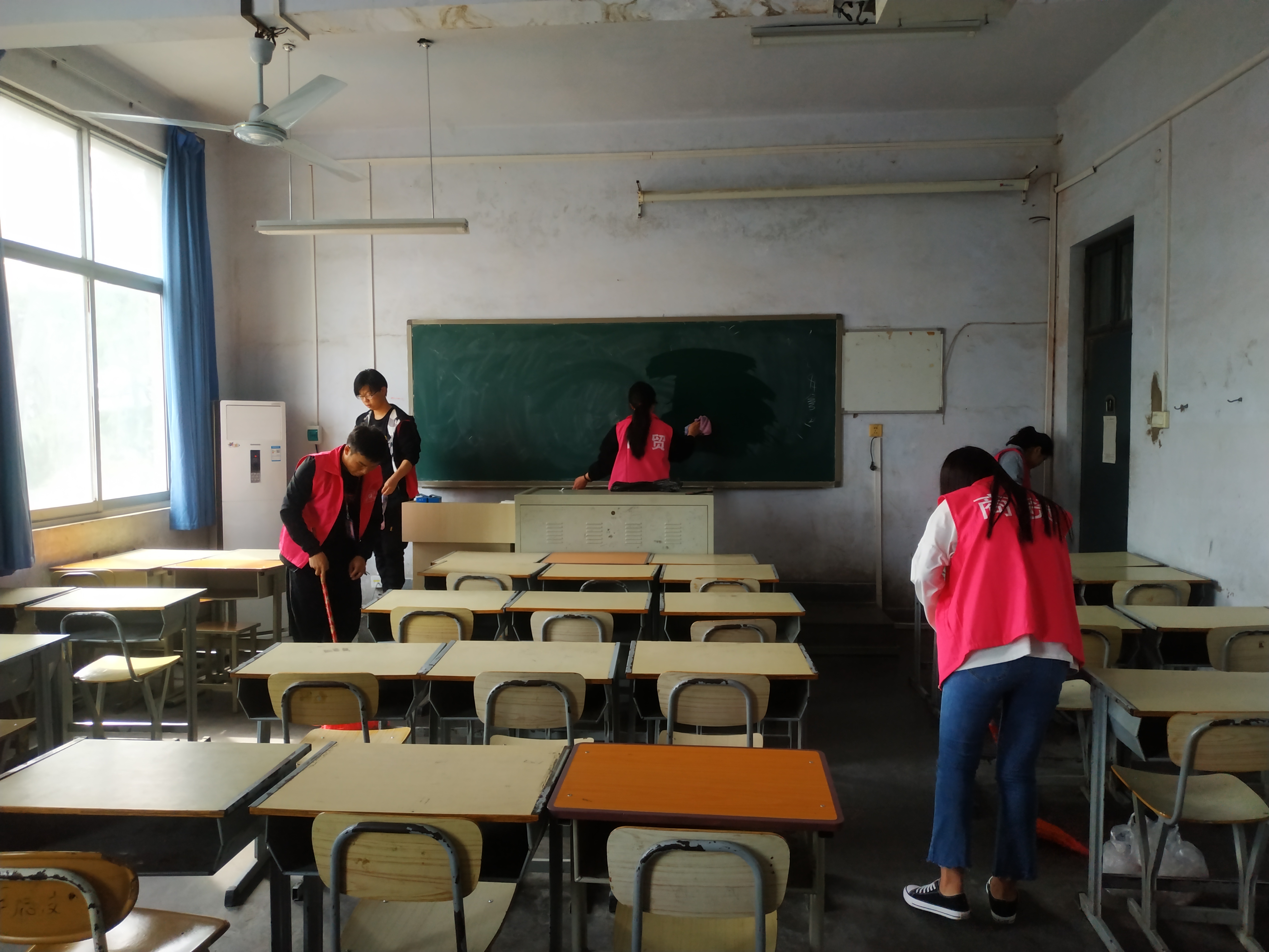 负责人周密组织,进行简单的任务分配,引导同学们清理垃圾,同学们积极配合指挥,不怕脏,不喊累,相互配合认真打扫校园死角。此次活动同学们都力所能及的将教室打扫干净,把桌椅摆放到位。通过自己的微薄之力,为自己、为他人贡献一个良好的学习环境。