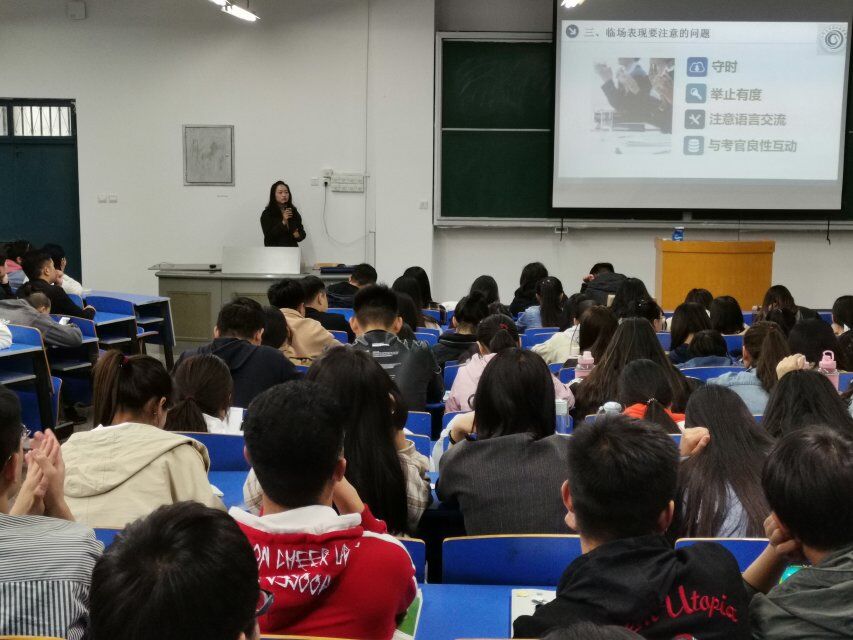 2019年4月27日中午,国产又猛又黄又爽的视频针对2017级即将顶岗实习的学生进行了求职前培训,本次培训的主题是“如何在面试中营销自己”。主讲老师李然为同学们介绍了基本的求职面试礼仪,重点讲述了“求职前的准备”、“如何塑造良好的职业形象”、“临场表现要注意的问题”、以及“求职后的礼仪”等知识。