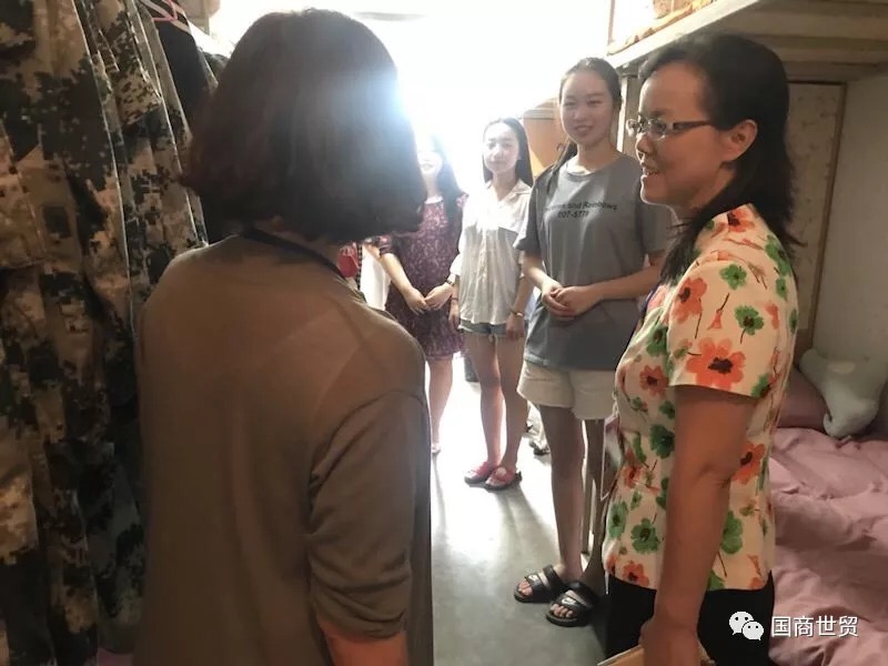 陈君丽院长一行看望了女生宿舍楼7号楼、8号楼的所有学院新生们,从一楼到七楼,陈院长亲切的与同学们进行交谈,询问同学们入住是否适应,饮食是否习惯,查看了宿舍的入住情况,并叮嘱同学们要警惕外来传销人员,切勿轻信扫二维码的小广告等。
