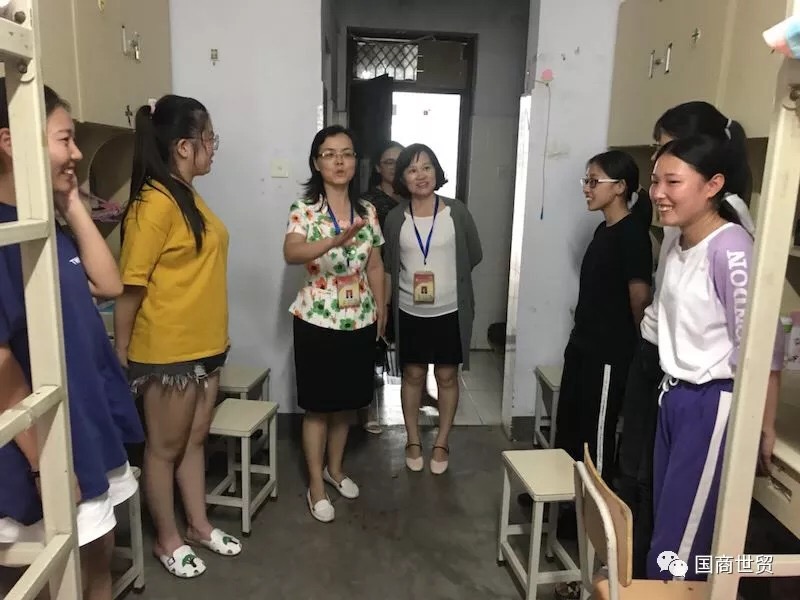 又是一年九月一,又是一年开学季,我们迎来了朝气蓬勃的2018级新生。为了解新生的入住情况及宿舍安全状况,2018年9月2日下午,校院长陈君丽教授带队,商贸学院党政领导及新生辅导员赴学生宿舍进行走访调研。