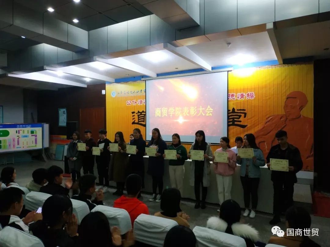 这次表彰大会是对商贸学院开学至今开展多项活动的一次总结和回顾,既有站在台上领奖的同学的积极参与和优秀表现,也包含台下幕后很多组织者,工作者的辛苦付出。小编觉得这些荣誉是属于台上的你们的,也是属于台下的你们的。