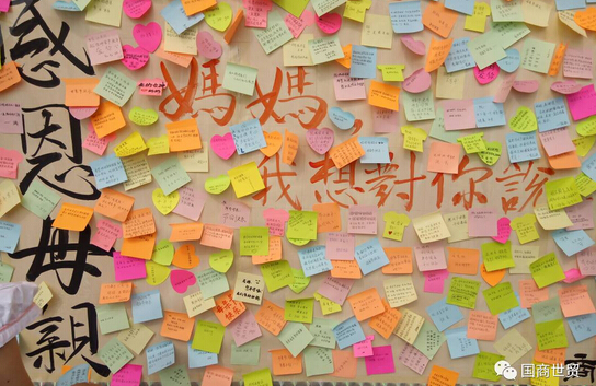 其次是学生会组织宣传感恩母亲,号召全体同学大声说出对妈妈的爱。同学们可能因身在异地求学不能看望母亲,可能有些同学不善于表达,商贸学院学生会和党员积极分子积极为大家服务,提供便利贴和笔,号召同学们写出对妈妈想说的话,对妈妈的祝福,表达对妈妈的爱。