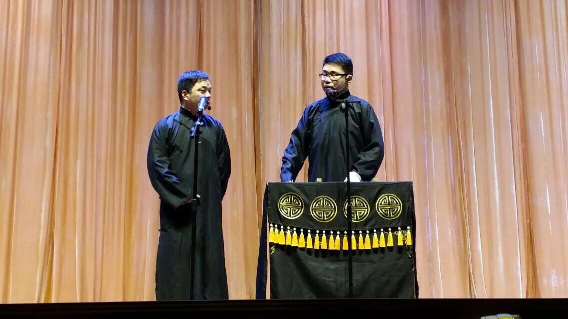 随着啦啦操的闪亮登场,朱海老师客串的金鸡玩偶引爆全场气氛。舞蹈《彩云之南》、《Boom Clap》,一个柔美,一个火爆,惊艳四座。歌曲类节目《玫瑰》、《告白气球》再加上《暗香》,几首歌曲风格迥异,时而激昂,时而浪漫,时而热情似火,跆拳道和武术社表演的《武魂》博得了观众们阵阵掌声。语言类节目更是丰富多彩,有发人深省的小品《贷价》,演技精湛的小品《药方》,相声《捧逗争哏》中两位同学的精彩表演和深厚功底更是获得了满堂喝彩。情景剧《追忆峥嵘岁月》让大家又重温了经典的红色年代,最后由商贸学院教师们合唱《唱歌吧,孩子们》把整台晚会推向了高潮。