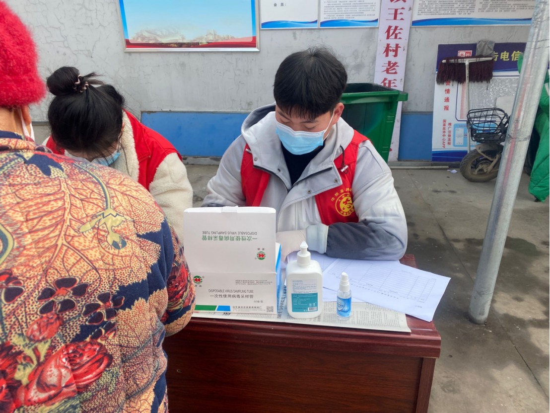 志愿服务内容:村口卡点值班,协助医护人员核酸检测